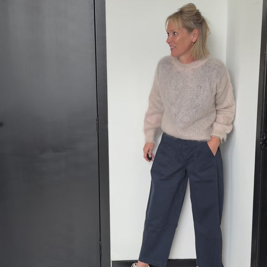klassieke barrel stijl / kleur donkerblauw / past voor elk model / ruime steekzakken aan de zijkant / sluiting met knoop en rits / rekband op de rug / kan gedragen worden in verschillende stijlen