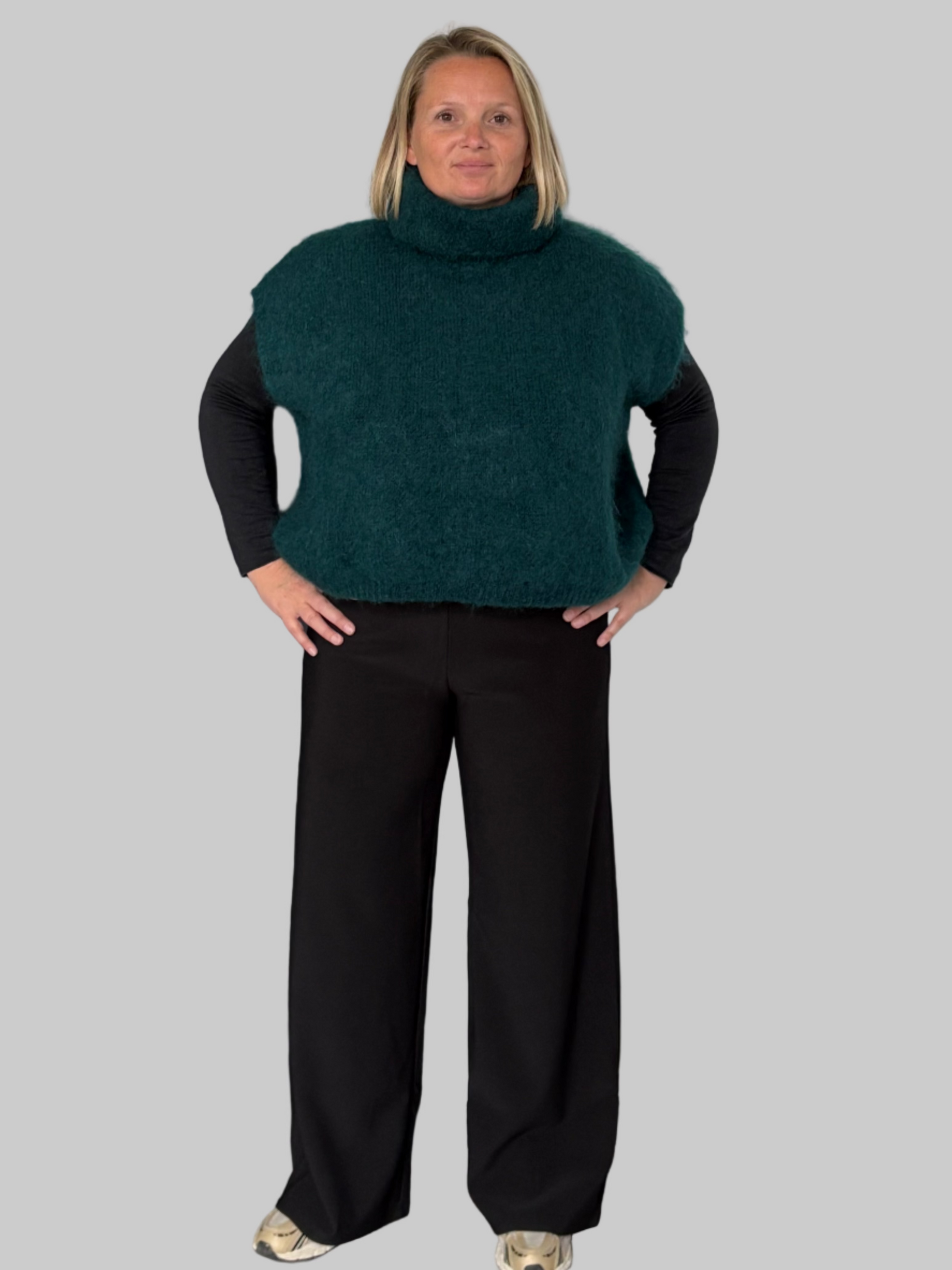 recht model met iets wijdere pijpen / kleur zwart / volledig met rekband in de taille - geen knoopsluiting / dikkere stof dus ideaal voor herfst en winter / Jo draagt M en Sophie draagt L en past perfect voor beiden / valt heel soepel / een echte musthave
