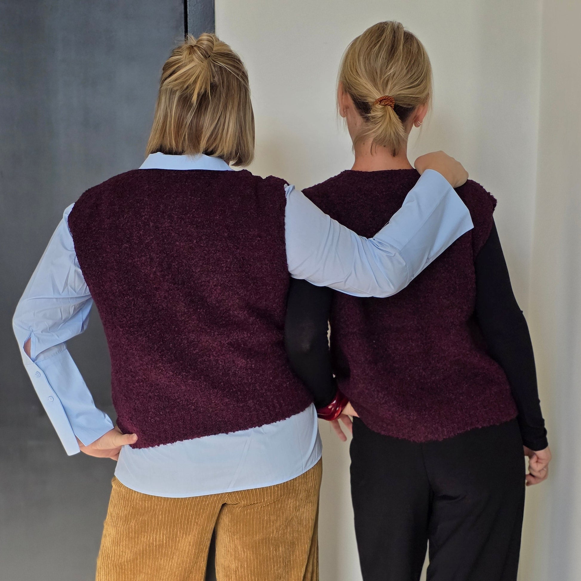 heerlijk zacht / kleur burgundy / tailleert normaal / kan voor S-L / bij grotere cup maat valt hij meer aansluitend (zie foto's Sophie) / heel tof en gemakkelijk te combineren / armuitsnijding voldoendegroot voor hemdje of blouse