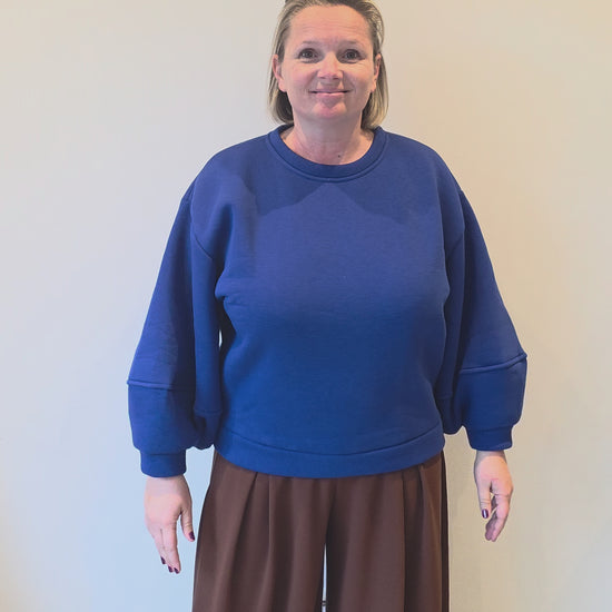 Basic effen sweatshirt met lange ballonmouwen, ronde hals en oversized fit. Prachtige koningsblauwe kleur. Dit is een musthave sweater, kan eindeloos gecombineerd worden. Past comfortabel voor maat 36 t/m 42