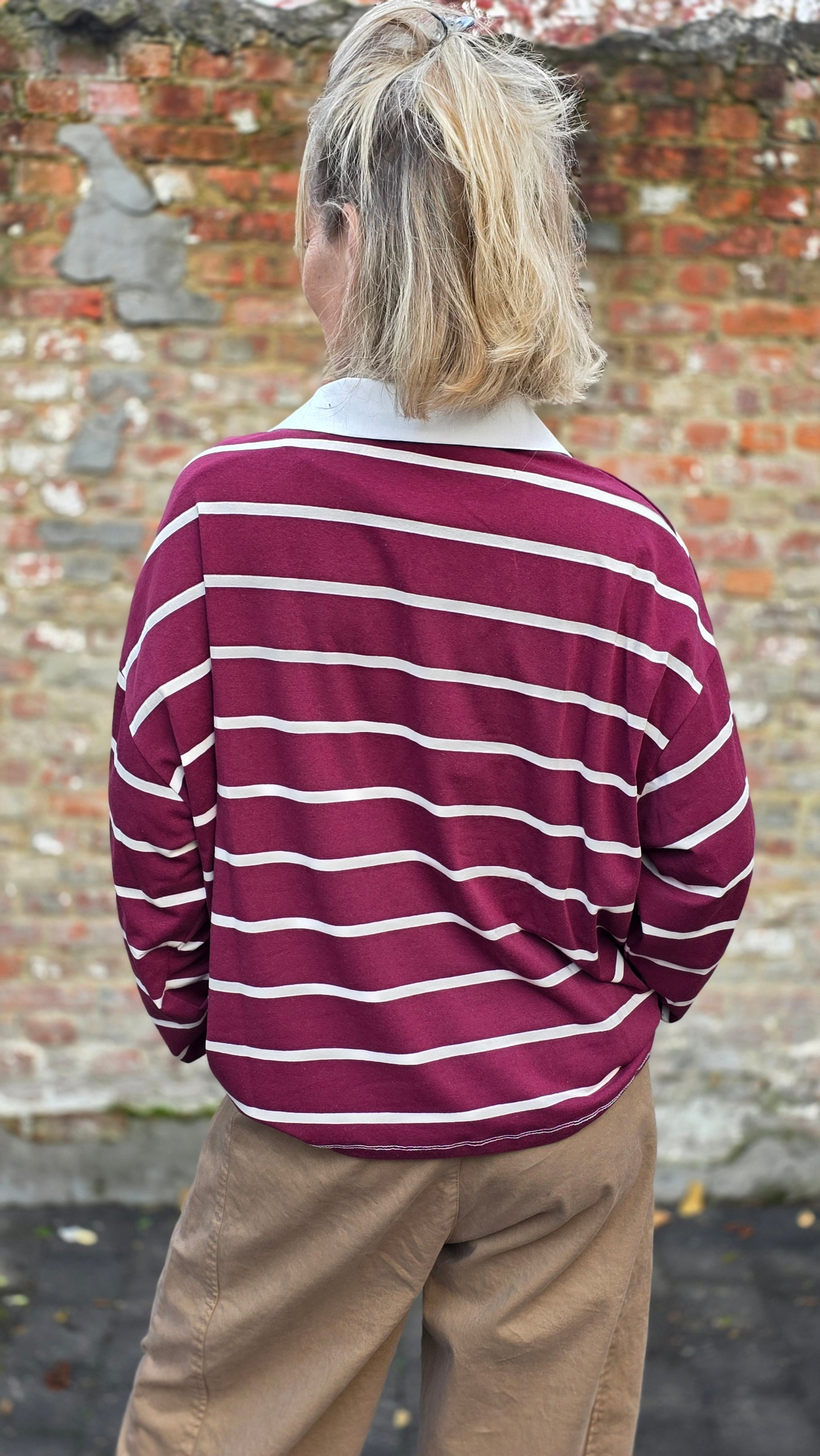 Trendy poloshirt met lange mouwen en reverskraag. Dikkere stof die soepel valt. Draagt heerlijk en is ideaal voor een casual of casual chic look. Kan zowel casual gedragen worden of casual/business chic.