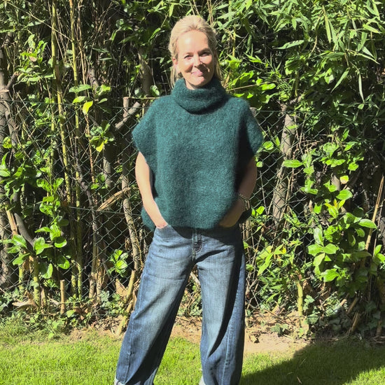Kleur donkergroen / heel stijlvol / kraag kan dubbel omgerold worden / zacht om dragen